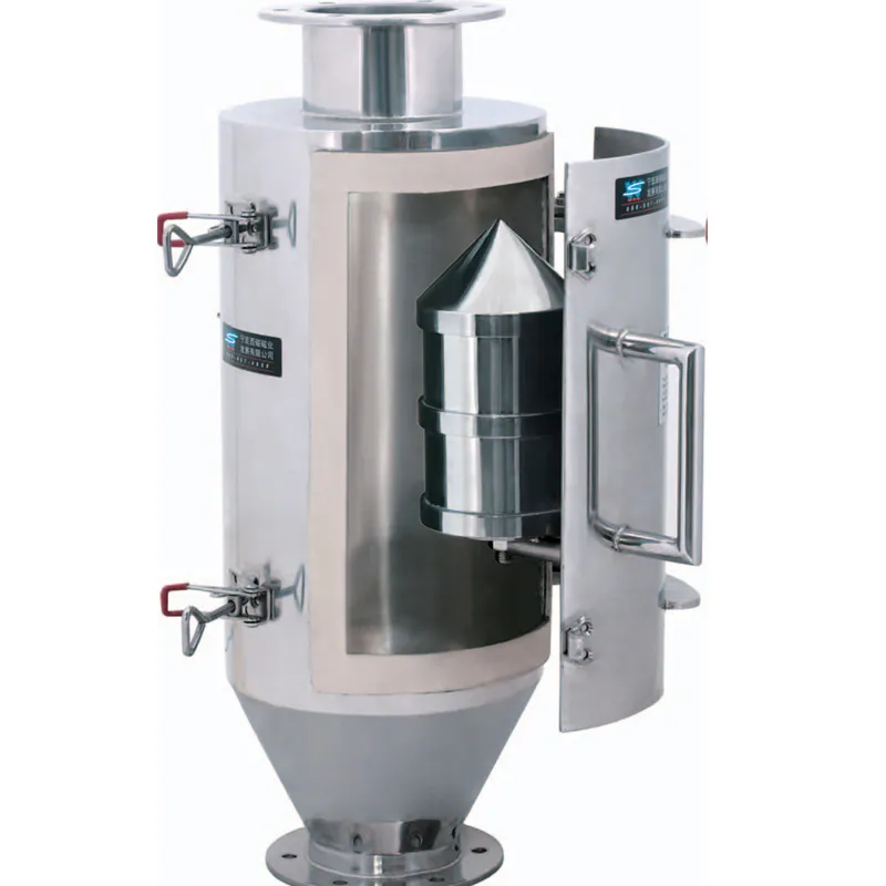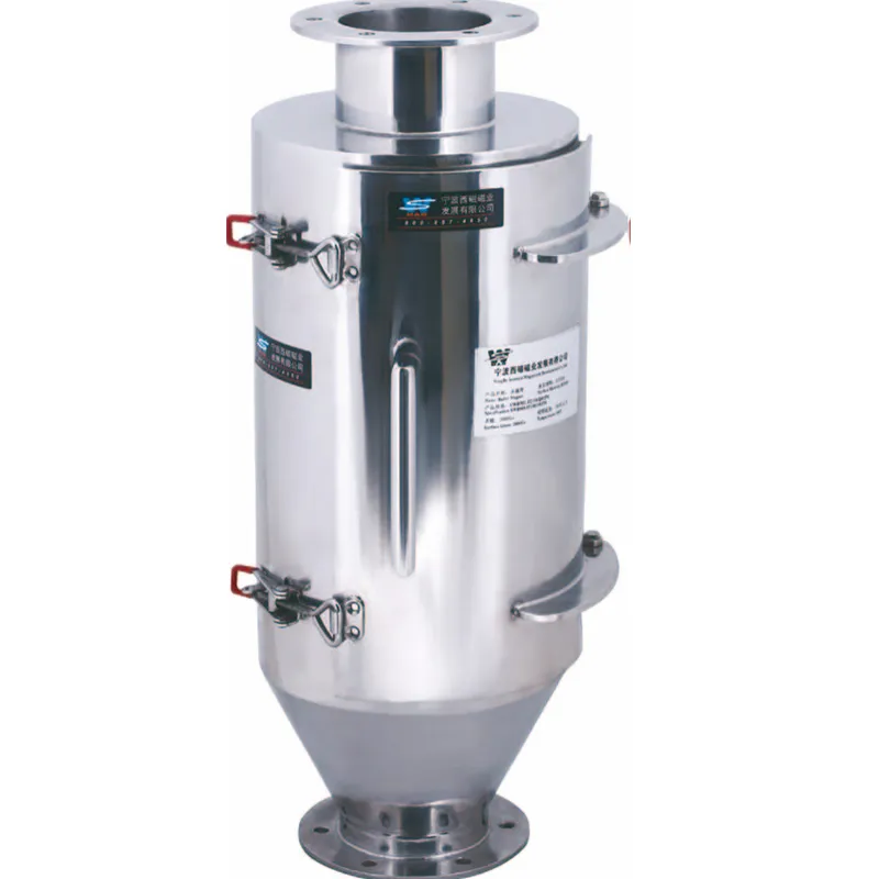 Cada imán de bala o torpedo magnético consta de un núcleo de imán cónico en forma de bala alojado en una carcasa de acero inoxidable, generalmente instalado en sistemas de tuberías de transporte. Estos separadores capturan eficazmente los contaminantes ferrosos, lo que garantiza la limpieza del material y protege los equipos posteriores de posibles daños.